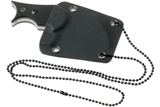 The Böker Plus Urd 2.0 is a solid fixed knife, made to carry around your neck with a sleak kydex sheath. The Urd was designed by Dirk Hofmeister. Remarkable about the Urd is the handle. At first glance it might look a little strange. However, once you hold it you notice how ingenious this design is. Your fingers automatically fall into the grooves of the handle. You place your thumb on top of the blade in the cut-out. The knife will now properly be secured in hand and won’t go anywhere. As a result you can safely use the Urd despite its size.
