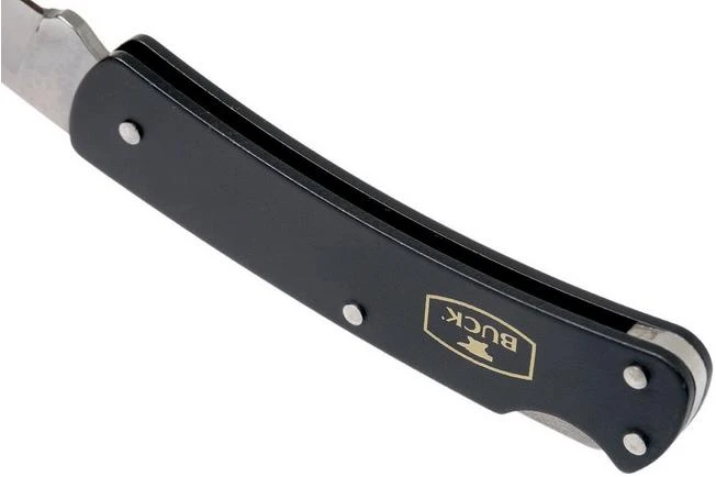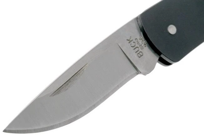 The Buck Alumni is a very compact and light-weight pocket knife for daily use. You use it open packaging and letters or to clean fruit. The compact blade is only 4.8 cm long and won’t intimidate anyone. The blade is made from 420HC steel. A stainless type of steel, often used by Buck