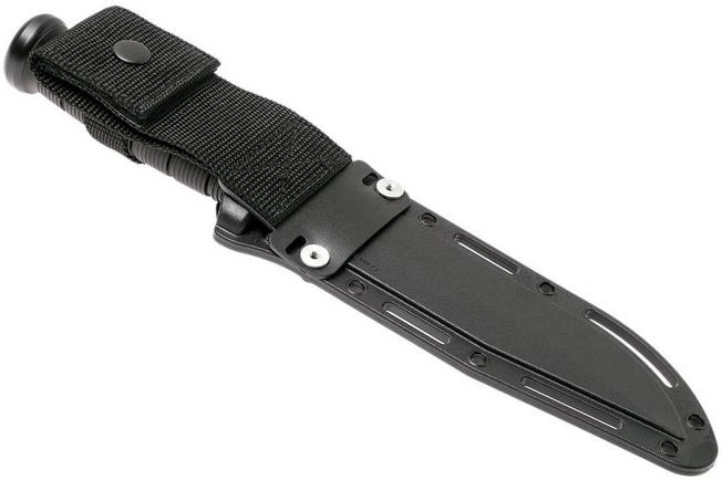 The Cold Steel 39LSFC Leatherneck is a fixed knife with a tactical appearance. The blade is made from German D2 tool steel. This is a non-stainless type of steel with exceptional qualities in terms of sharpness retention and toughness. To protect the blade it is provided with a DLC (diamond-like coating). The handle of this knife is made from Kray-Ex. To make sure you don’t slip and end up on the blade, the knife is equipped with a sturdy steel finger guard.
