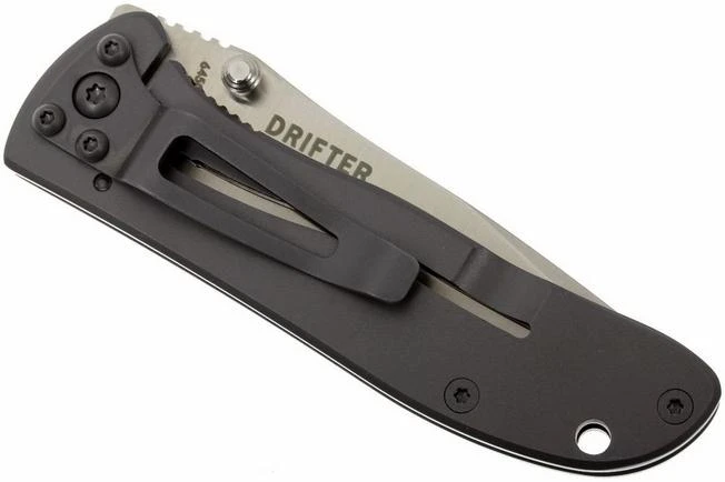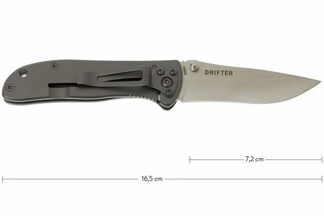 The CRKT Drifter is a very strong, solid pocket knife. This makes it very suitable for Every Day Carry. The knife is light weight and fairly small, which makes it fit into your pocket easily. The blade has a drop-point shape and is made of stainless steel. The matted finish gives the blade a rugged look.