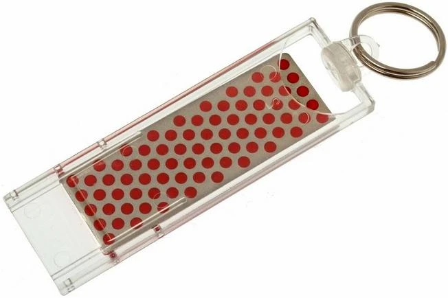 Attach this compact sharpening stone with diamond-coated surface to your bunch of keys and you will always be able to quickly sharpen your knife. The size of the sharpening stone is, of course, limited, but this is a real DMT, top-quality sharpening stone. So you can seriously use this sharpening stone.