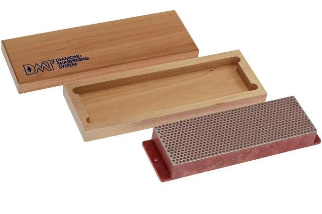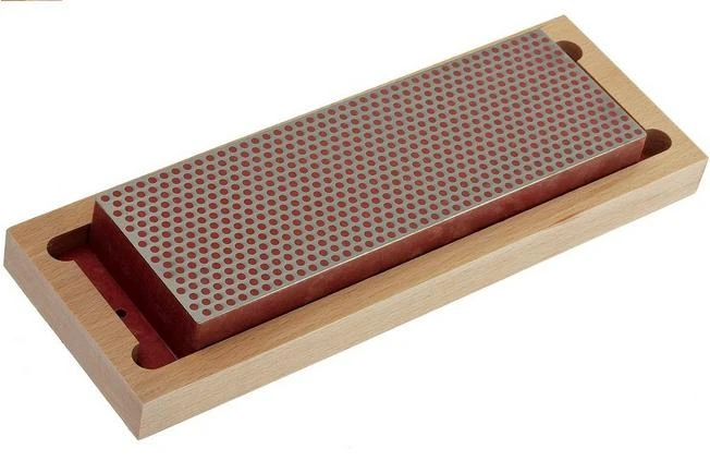Sharpening stone with diamond sharpening surface with the wellknown circular pattern. The stone has a coarse grit. This sharpening stone comes in a hardwood box with anti-slip feet.