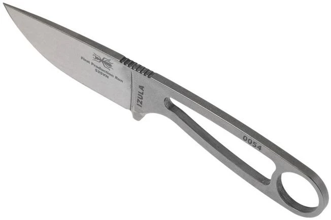 The ESEE Izula S35VN is named after an aggressive ant from the Peruvian jungle. This is to emphasize that despite its size you shouldn’t underestimate this knife. The ESEE Izula is a versatile fixed knife. It will easily find a place in a bag or backpack or can be carried as a neck knife. Despite its size you can easily hold it. At the back you will find a large opening for your little finger to make sure you have an excellent grip. You could, of course, also make a paracord handle to increase the grip. And if you prefer a real handle ESEE also delivers those as an accessory. This, of course, will make the knife a little thicker.