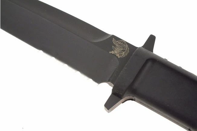 Commissioned and officially adopted in 2002 by the Ninth Rgt. Incursori “Col. Moschin”, this model is the quintessence of a pure combat knife with an asymmetric blade. Used by the Arditi, in whose footsteps the Col Moschin Regiment follows, it has been re-elaborated in a modern form, endowed with a partly plain and serrated blade, integral guards and a removable E.R.M.H. handle in Forprene. Grinding is hollow grind razor sharp. The centre of gravity is towards the end of the handle, the point especially sharp, it is light, manageable and intuitive.