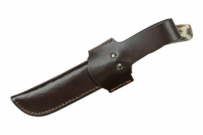 The MAM Hunting Knife Stag Horn Handle 5474 is a large hunting knife that fits comfortably in hand. The handle is made from deer antler, so each knife has a unique pattern. The Bowie blade shape gives the knife an elegant appearance. You can safely store the knife in the included leather sheath. You can also attach this to your belt, so your knife is always within easy reach. The knife is held in place in the sheath by means of a press-stud.
