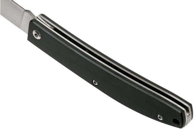 The Maserin EDC 164 is a slim and light-weight EDC pocket knife. The design is a modern interpretation of a classic Italian design. You can clearly see the lines of the Pattada in the blade. You open the EDC with two hands, and when opened a solid slipjoint will keep the blade in place. Not a full lock, only some resistance. As such you can legally carry it with you almost anywhere.