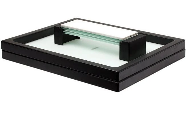 Everyone who sharpens their knives on water stones will recognize this sentiment: when you finish sharpening your knife your entire workstation will be soaking wet. This Shapton Sharpening Pond is the answer! It is a tub with a rubber edge that will collect all your sharpening water. As such you will not be turning your working station into a swimming pool, and, at the same time, you will always have water around to dampen your stone. However, in order to use this Sharpening Pond you will need a sharpening stone holder. This will serve as the base for the holder.