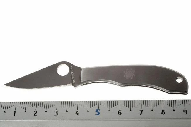Mini-knife from Spyderco. Small enough for a keyring, attractive enough to be a real Spyderco product. Thumbhole diameter: 0.6 cm.