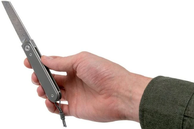 The The James Brand The Duval Damascus KN109111-00 is a fancy and modern gentleman’s knife. For this knife the people behind the James Brand became inspired by the rich history of the Traditionals. The classic pocket knives your grandfather used to carry. You, however, open these knives with two hands and do not contain a lock. Both aspects were ‘solved’ for the Duval.