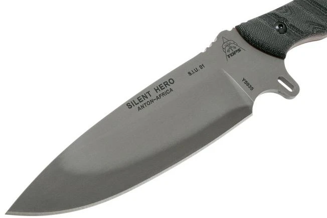 The TOPS Silent Hero is a large survival knife, designed by Anton Du Plessis. He works for the Specialized Interdiction Unit of the Silent Heroes Foundation in South-East Africa. This foundation is committed to the preservation of wild animals. A good knife is indispensable in the field.